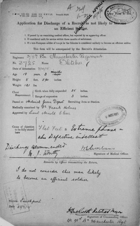 The reason? Extremely flat feet and “defective intellect”—a vague and broad classification that could have meant anything from dyslexia to slow reaction times.