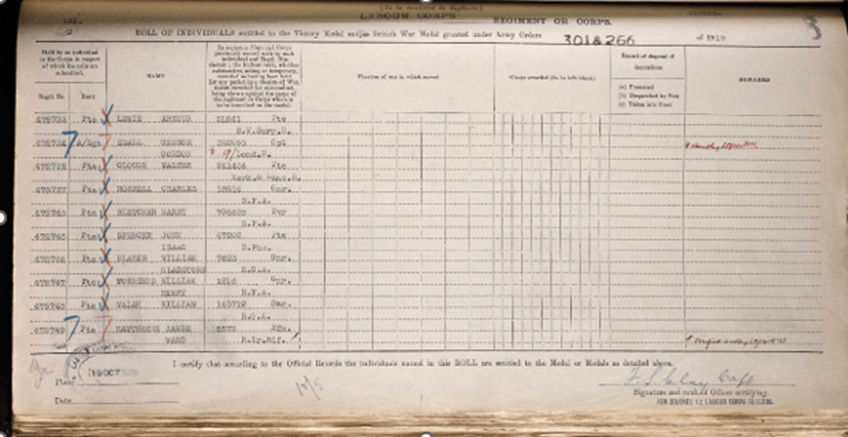 Despite his discharge, Harry was determined to serve. While I haven’t located all his records, I did find a medal card and pension card showing that he later joined the Labour Corps, East Lancashire Regiment, and Royal Field Artillery.