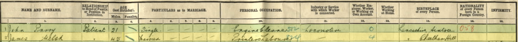 On the evening the census was recorded, James was a patient in Booth Hall General Hospital. The hospital was built in 1908 and primarily used to care for the sick from the Prestwich Poor Law Union. There is no indication as to how long James spent in hospital, or the reason.