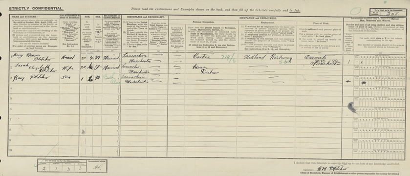 By 1911, the family had moved just off Hyde road, now occupying 3 rooms. Sarah, then 12 years old, was recorded as an only child, which was unusual for the time.