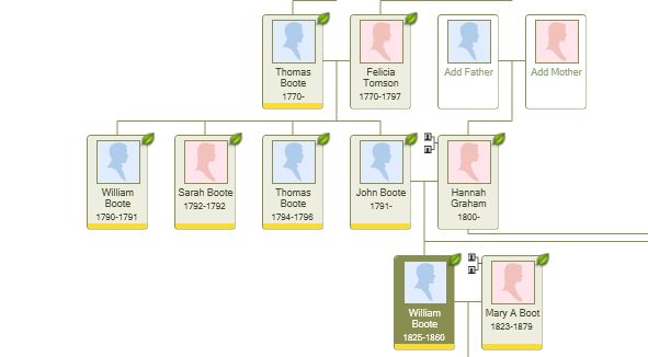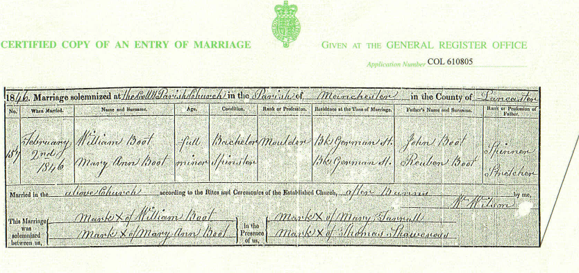 But how did the same name appear on opposite branches within the family? In a story still to be fully explored, in 1846 Mary Ann Boot (my 3× great-grandmother) married William Boote (my 3× great-grandfather).