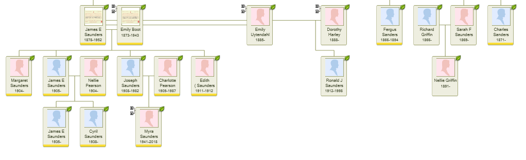 Further research into the 1881 census revealed that the older Saunders children were living in Birmingham — with their father, Charles. This discovery confirmed that Charles had not died before the birth of his youngest son, as stated on James’s birth certificate. It appears that Charles and Margaret had probably separated – maybe prior to the birth of James in 1878, with Charles relocating to Birmingham with the older children and Margaret remaining in Lancashire with James.